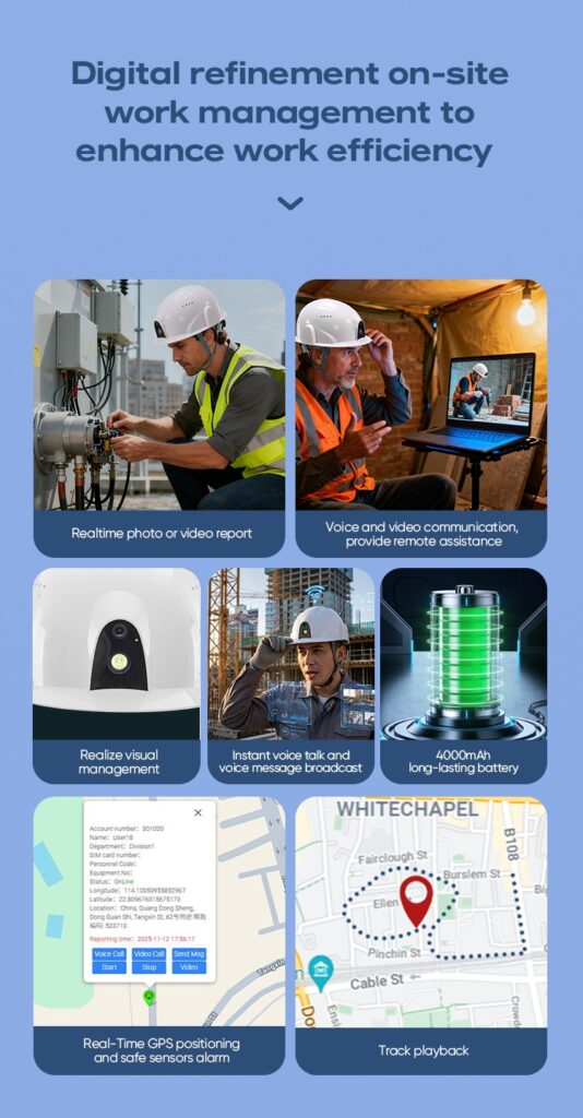 The Grandtime 5G smart helmet camera is designed for these demanding scenarios. It combines real-time video, voice communication, location tracking, and safety alerts into one wearable device.