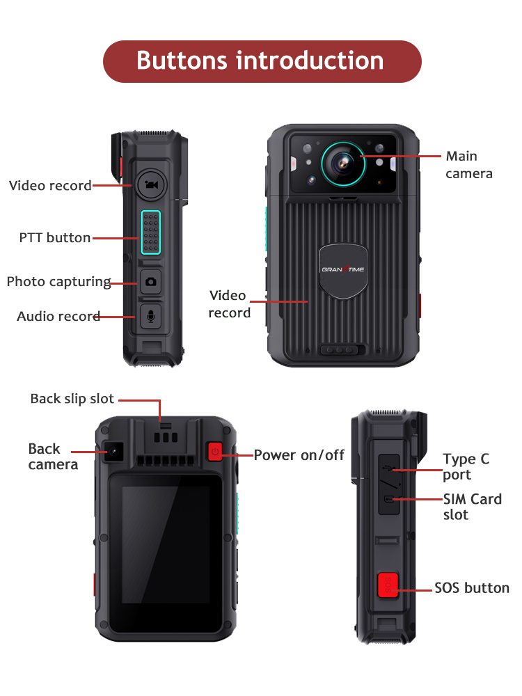 12) Main functions: voice single call or group call, video call, GPS realtime location tracking, 1080p video recording, audio recording, photo capturing, live video streaming to control center, SOS emergency alerts, remote video monitoring